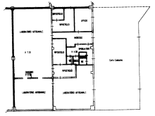 Piano Terra: Ingresso indipendente con corte di proprietà - Ufficio - 2 Spogliatoi con bagno - 3 Ambienti laboratorio - 4 Ripostigli