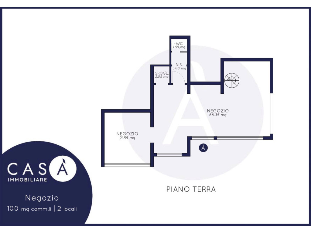 Piano Terra: Negozio con ampie vetrate diviso in due ambienti già separati - Spogliatoi - Bagno