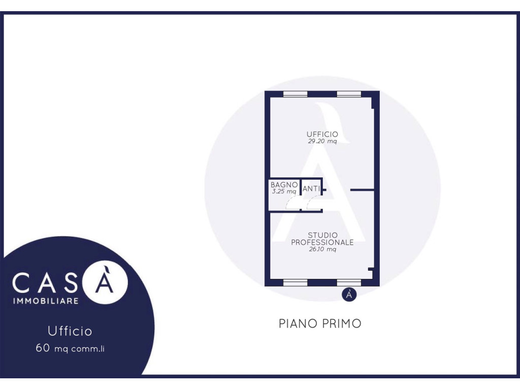 Piano primo: Ingresso su studio professionale - Ufficio - Antibagno - Bagno