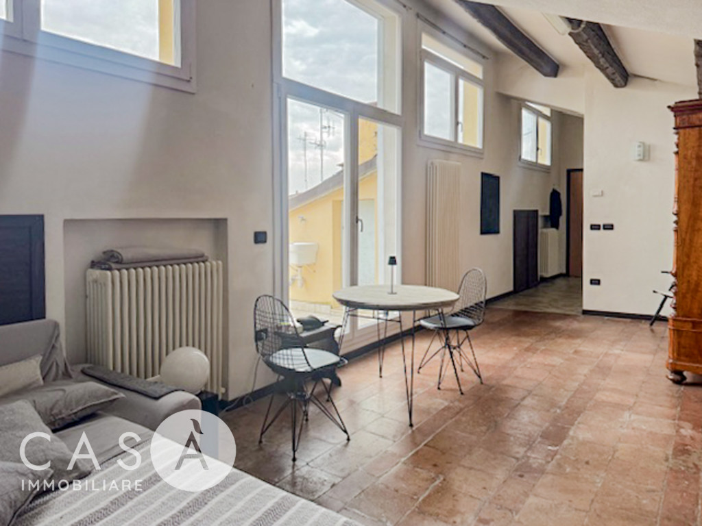 Monolocale di ampia metratura situato al terzo piano di un palazzo nel centro storico di Forlì.