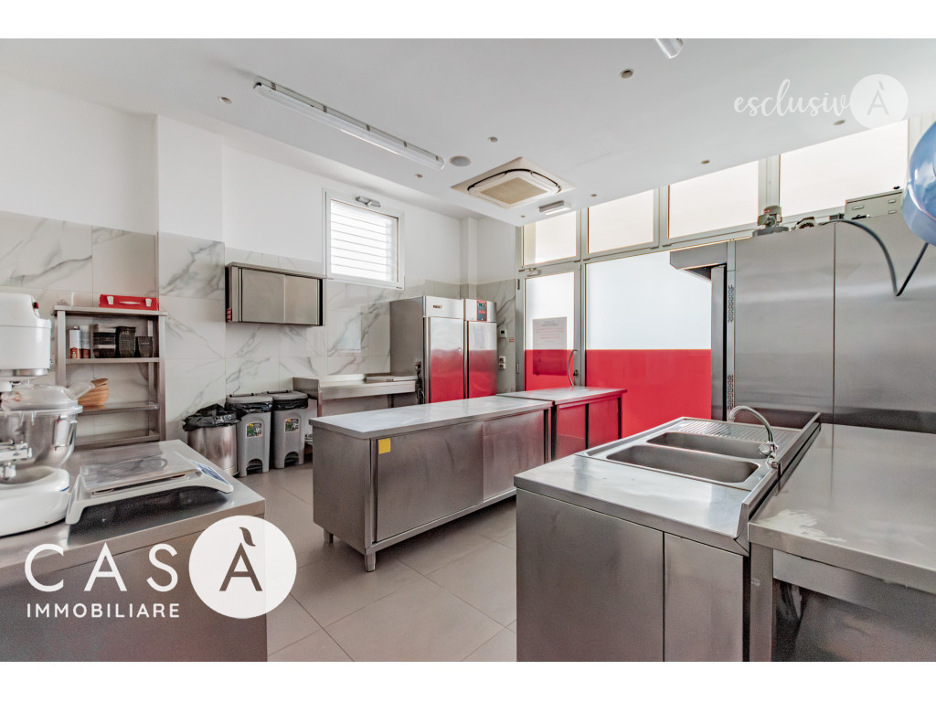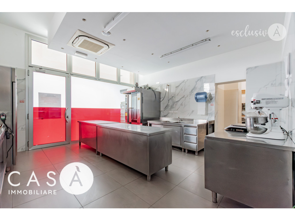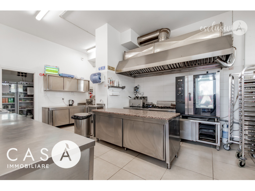 È fornito di tutte le attrezzature professionali necessarie per attività di gastronomia e pasticceria, già perfettamente organizzato e suddiviso per consentire lo svolgimento di entrambe le lavorazioni in modo efficiente e ordinato.