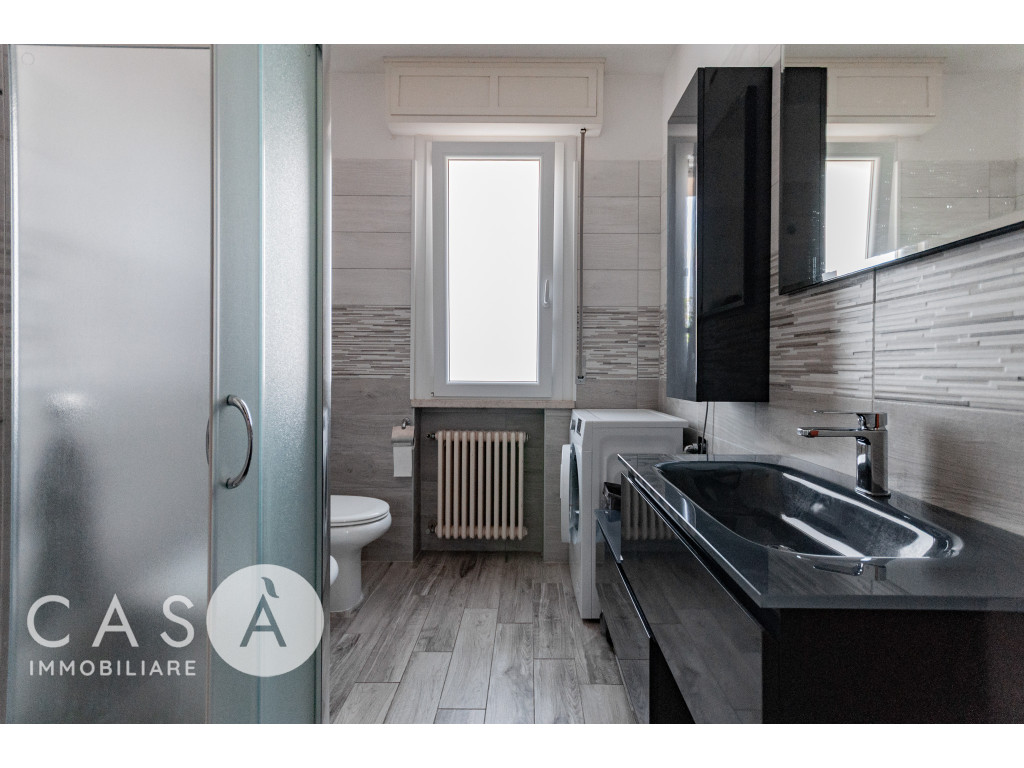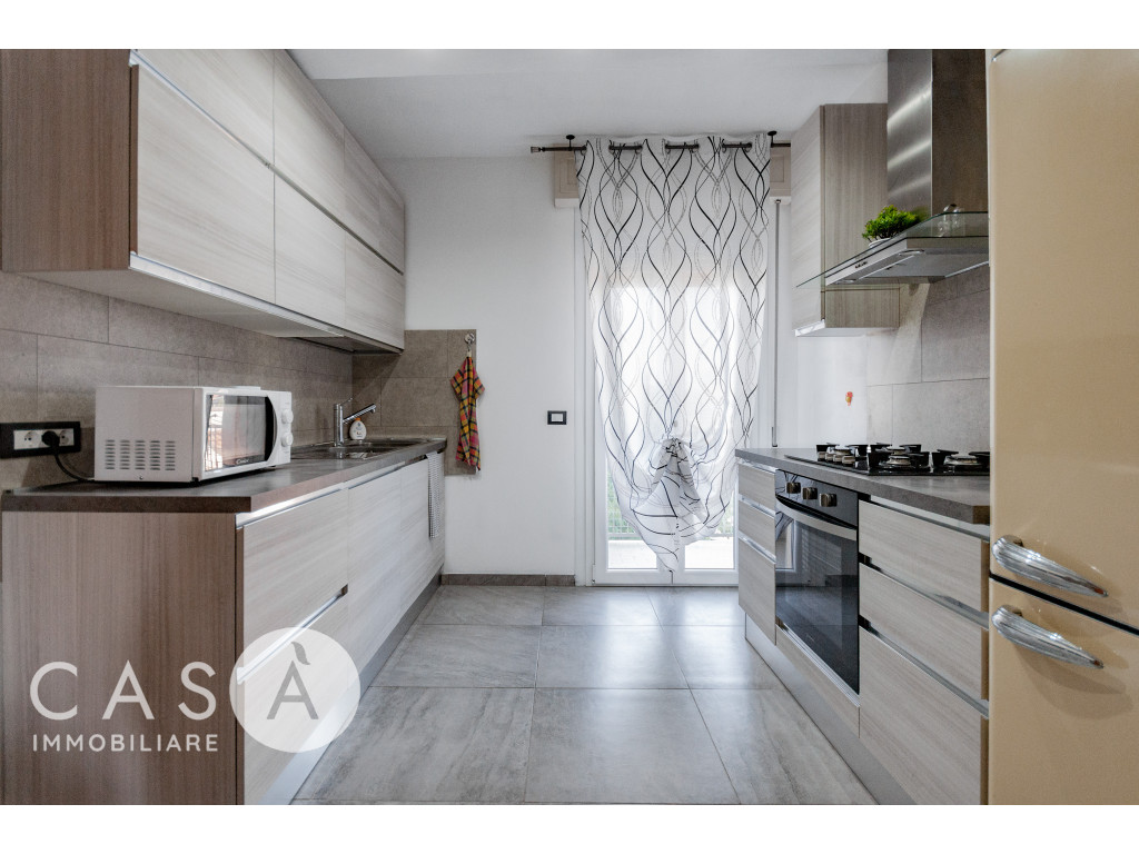L’appartamento, recentemente ristrutturato, è posto al secondo ed ultimo piano, è caratterizzato da 4 balconi e dispone di infissi in PVC con doppio vetro, zanzariere, riscaldamento autonomo e stufa a pellet ad alta efficienza.