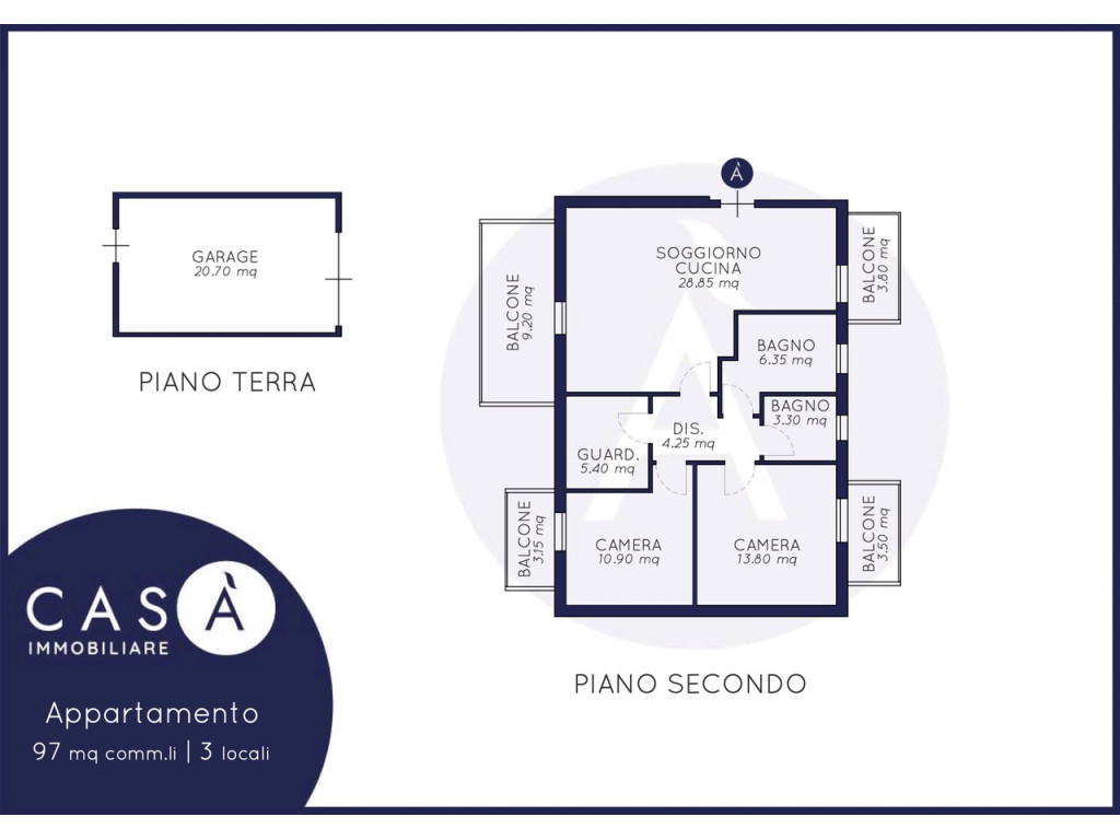 Piano Secondo: Soggiorno cucina open space - Camera da letto matrimoniale - Camera da letto doppia - 2 Bagni - Ripostiglio - 4 Balconi