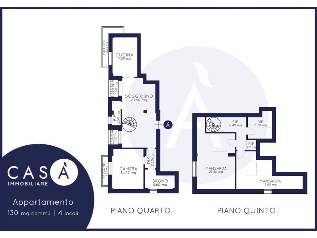 Piano Quarto: Soggiorno cucina open space - Camera da letto matrimoniale - Bagno - 2 Balconi - 2 Logge - Ripostiglio