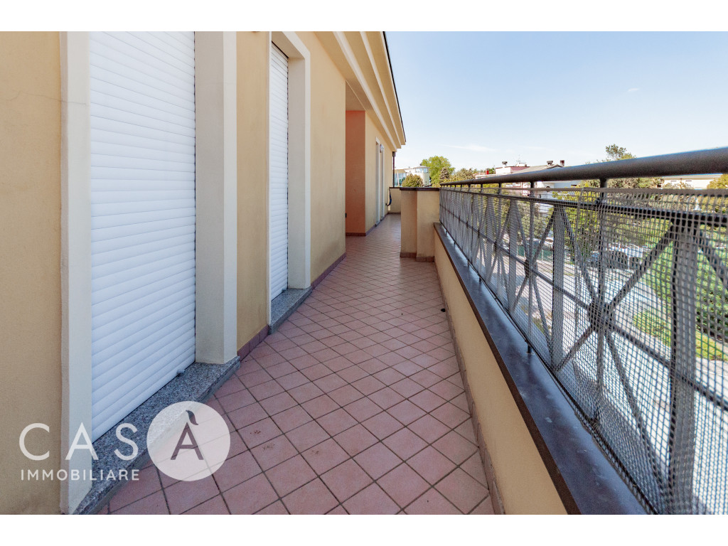 Completano la soluzione un ampio terrazzo e un posto auto di proprietà in corte condominiale.