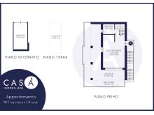 Piano Primo: Soggiorno cucina open space - Bagno - Balcone angolare a loggia