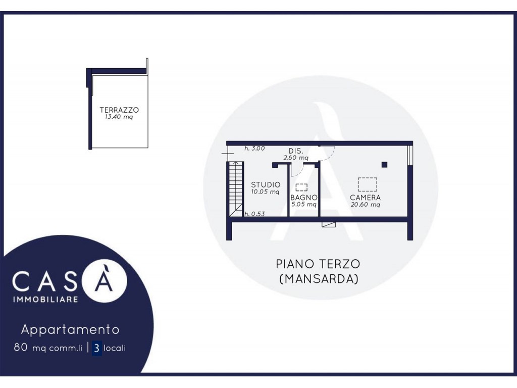 Piano Terzo: Camera da letto matrimoniale - Studio - Bagno - Terrazzo