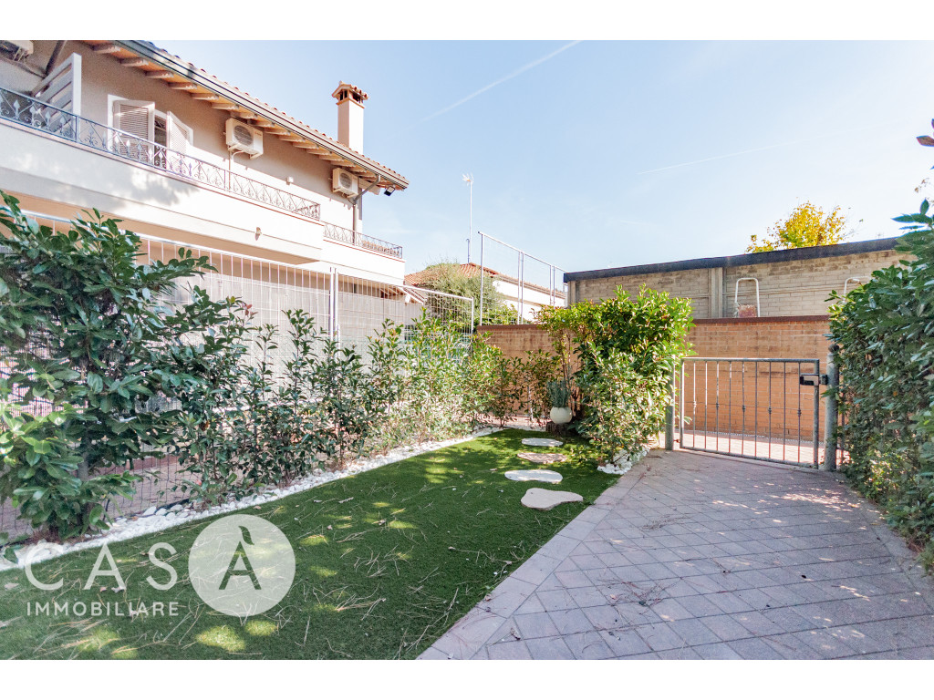 Si completa con un piccolo giardino al piano terra, un posto auto coperto e una cantina.
