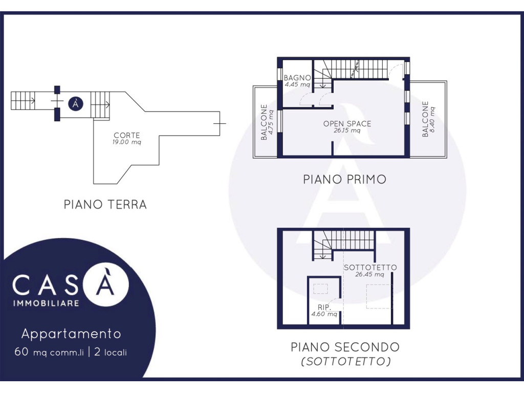 Si sviluppa al primo piano con soggiorno cucina open space, zona notte e due balconi, mentre al piano sottotetto è possibile ricavare una seconda camera da letto.
