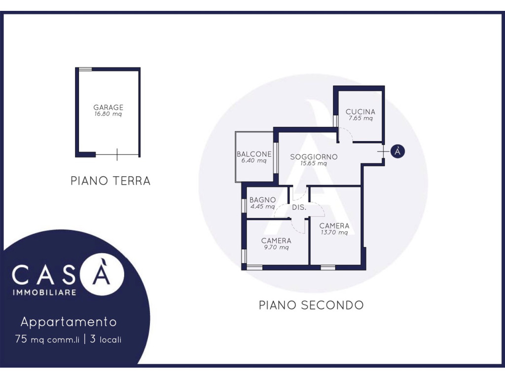 Piano Secondo: Soggiorno - Cucinotto - Camera da letto matrimoniale - Camera da letto singola - Bagno - 2 Balconi