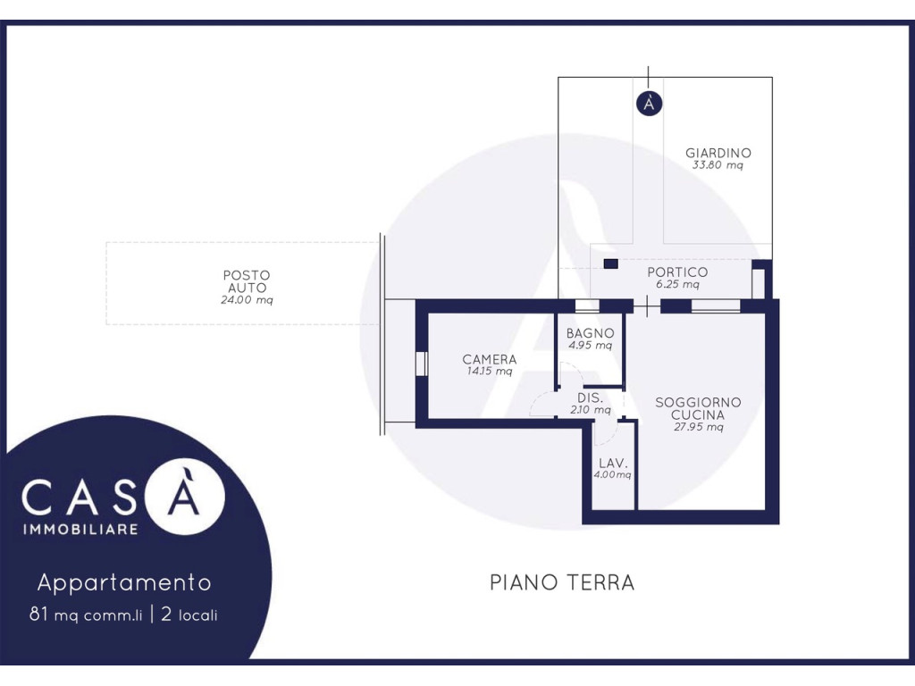 Soluzione al piano terra con ingresso indipendente e giardino.