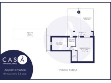 Piano Terra: Soggiorno cucina open space - Camera da letto matrimoniale - Bagno - Lavanderia - Loggia - Giardino