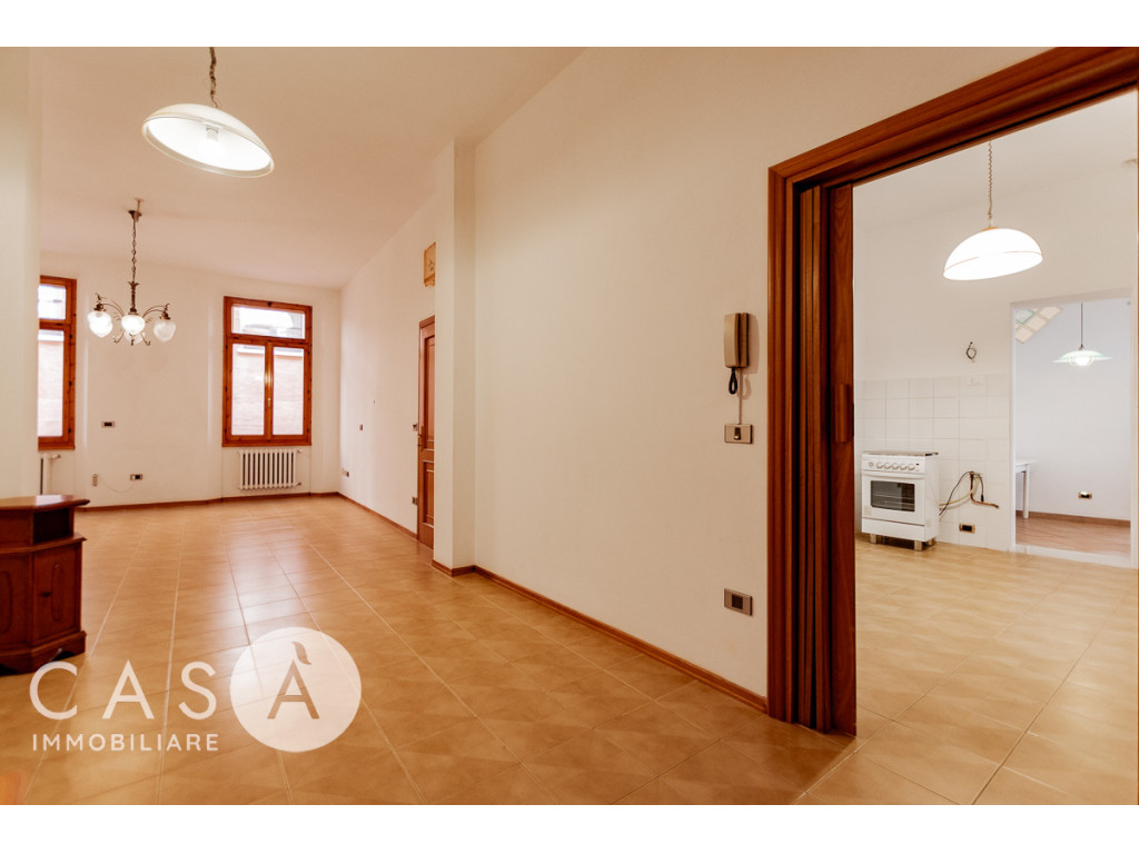 L'immobile, posto al piano primo, si sviluppa tutto su un piano e offre generose metrature.