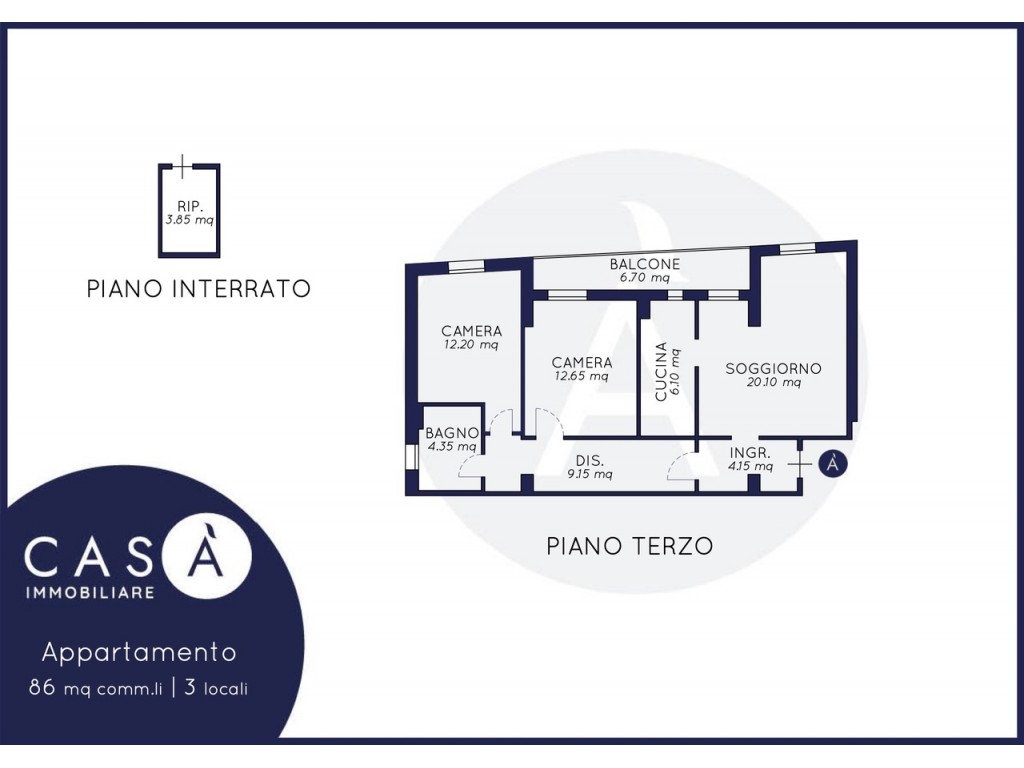 Piano Terzo: Ingresso - Soggiorno con cucinotto - 2 Camere da letto matrimoniali - Balcone - Bagno