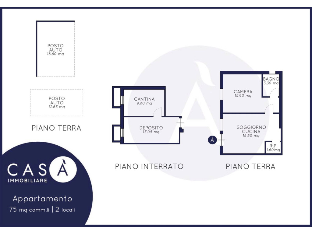 Piano Terra: Soggiorno/Cucina - Ripostiglio - Camera da letto matrimoniale - Bagno - 2 Posti auto