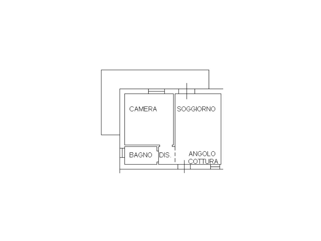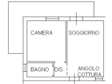 Piano secondo: Soggiorno con angolo cottura - Camera da letto - Bagno - Balcone