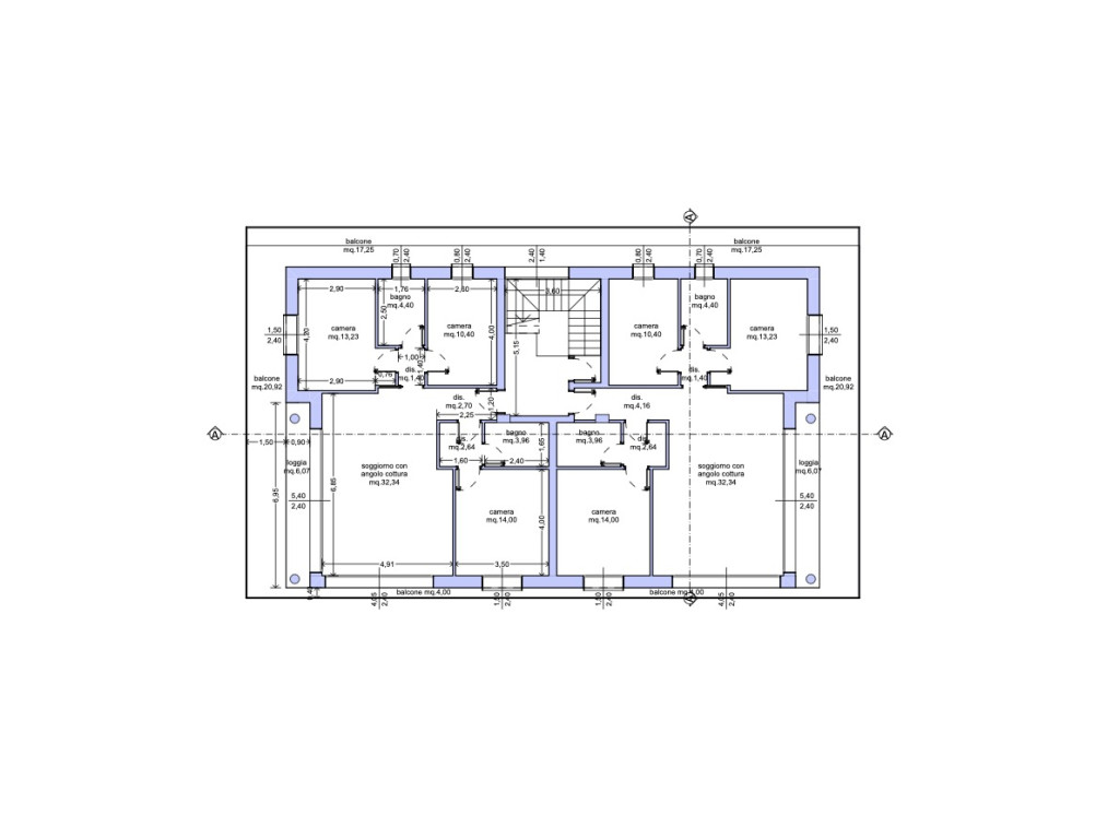 Soggiorno cucina open space - Disimpegno - 3 Camere da letto - 2 Bagni - Balcone