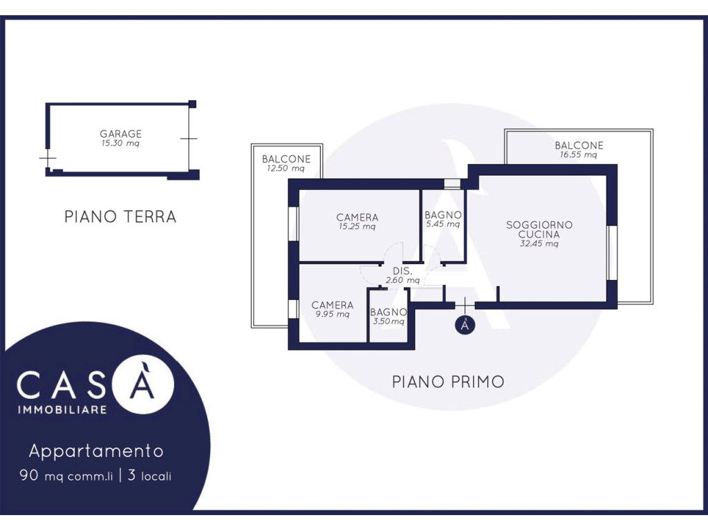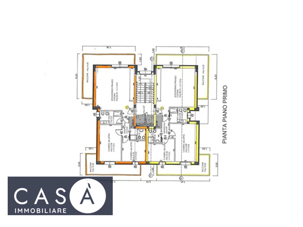 Piano Primo: Soggiorno cucina open space – Camera da letto matrimoniale – Camera da letto singola – 2 Bagni – Disimpegno – 2 Balconi