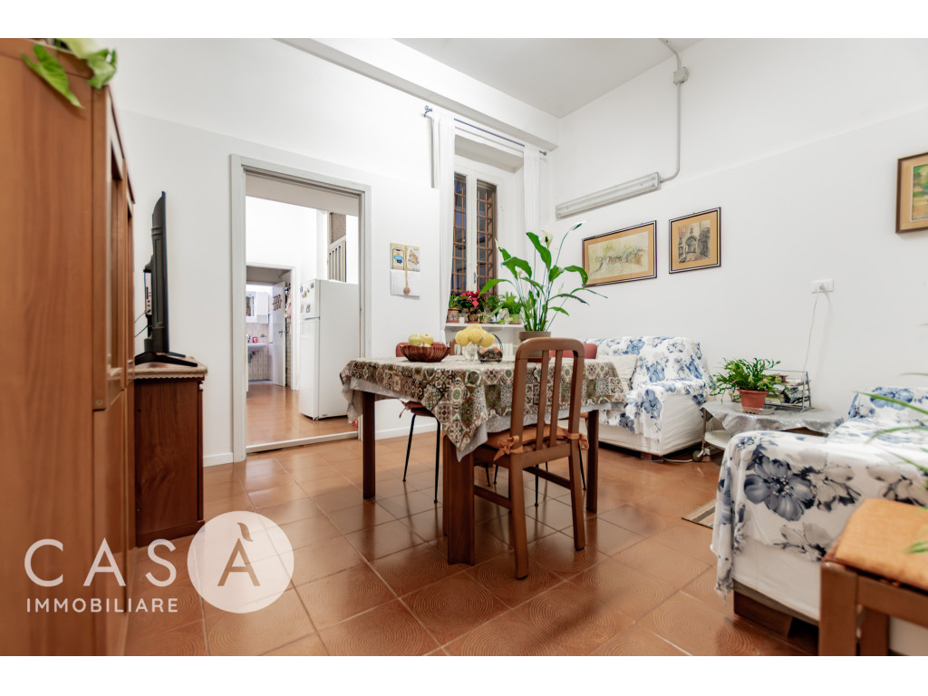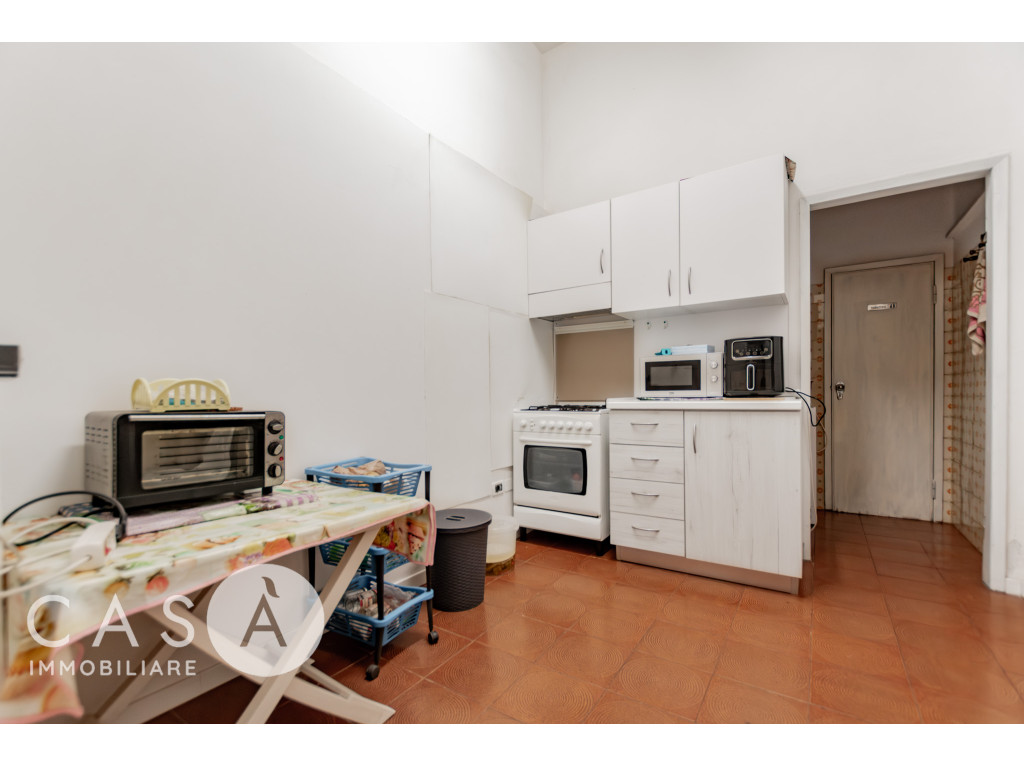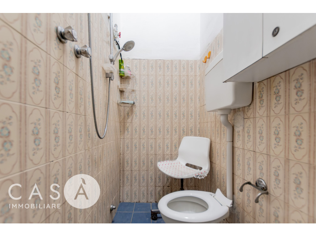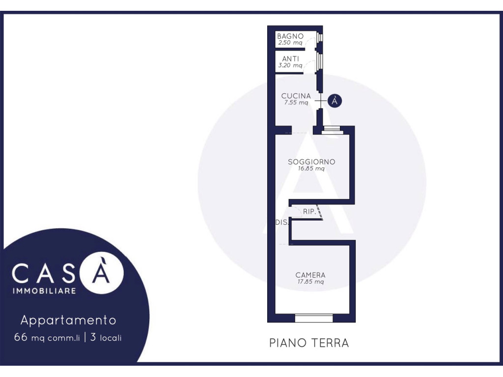 Soluzione situata al piano terra con doppio ingresso: uno indipendente da strada ed uno dalla corte comune interna.