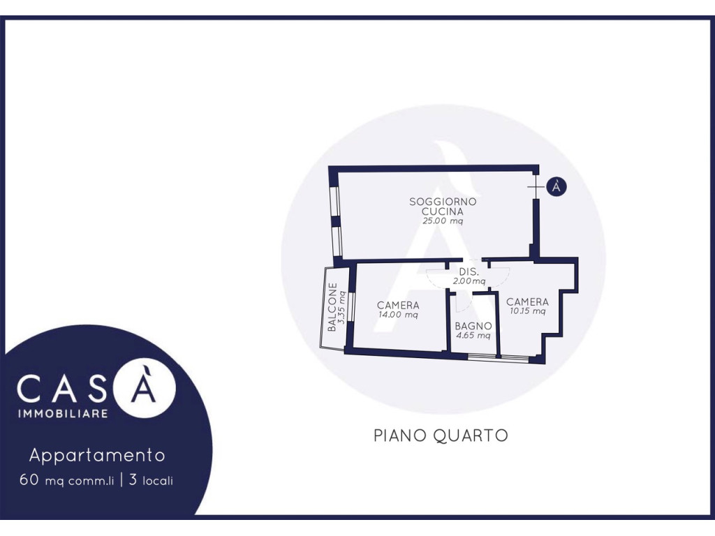 Piano quarto: Soggiorno cucina open space – Camera da letto matrimoniale – Camera da letto singola – Bagno – Balcone