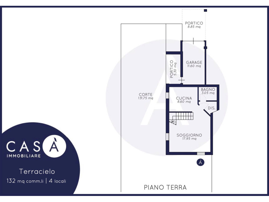 Piano Terra: Soggiorno cucina open space - Bagno - Portico