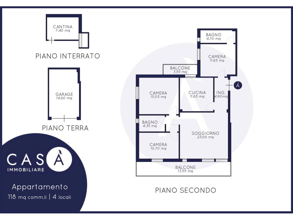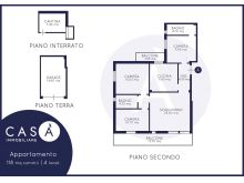 Secondo piano: Cucina - Soggiorno - Due camere matrimoniali - Camera singola - Due bagni - Due balconi
