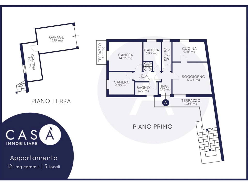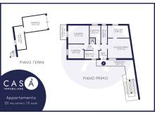Piano primo: Soggiorno - Cucina - Camera da letto matrimoniale - Camera da letto doppia - Camera singola - 2 Bagni - Terrazzo