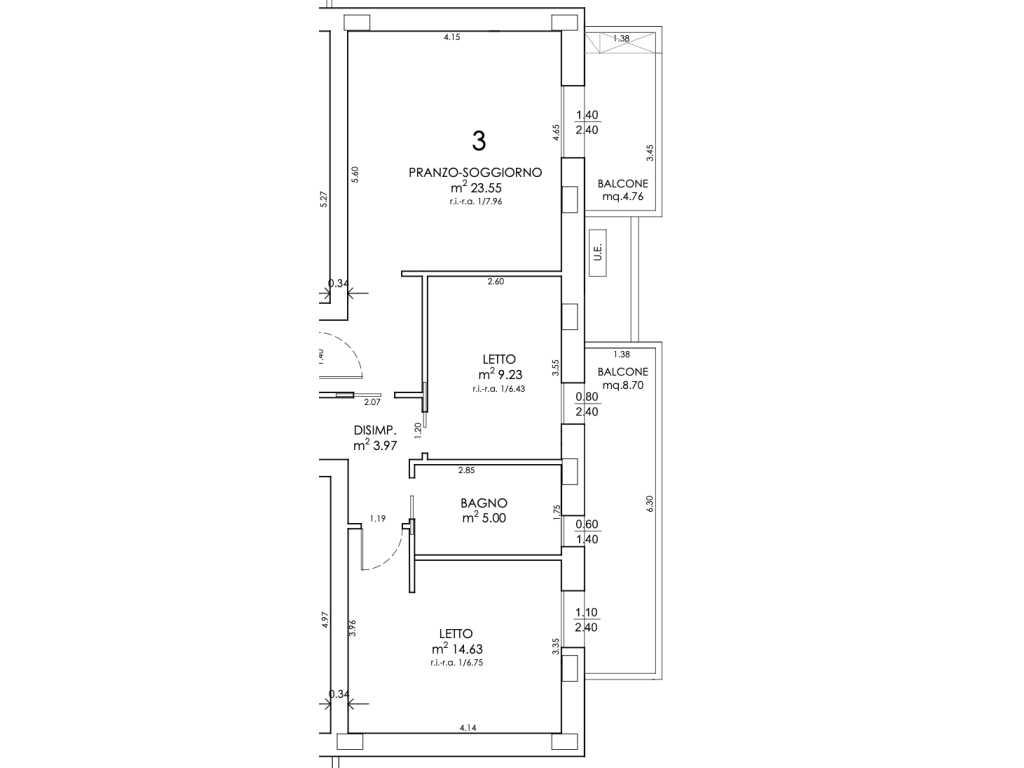Soggiorno cucina open space - Camera da letto matrimoniale - Camera da letto singola - Bagno - 2 Balconi
