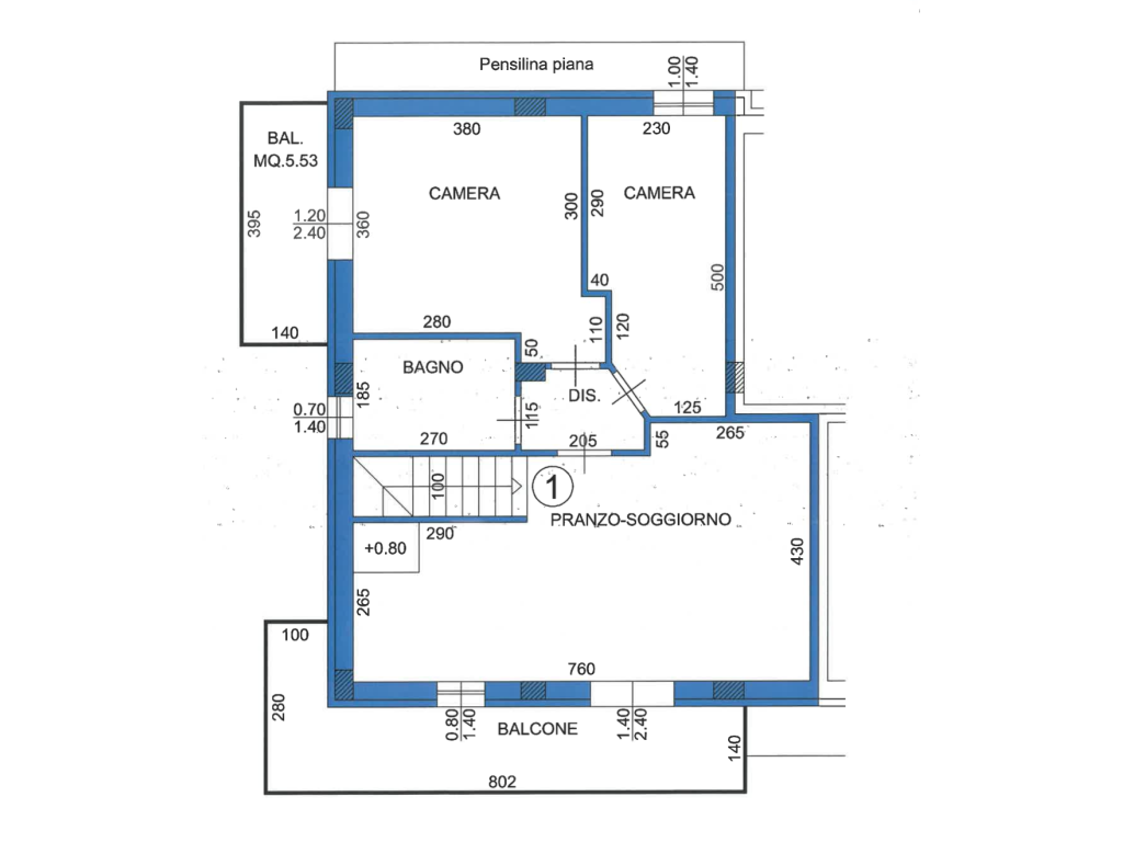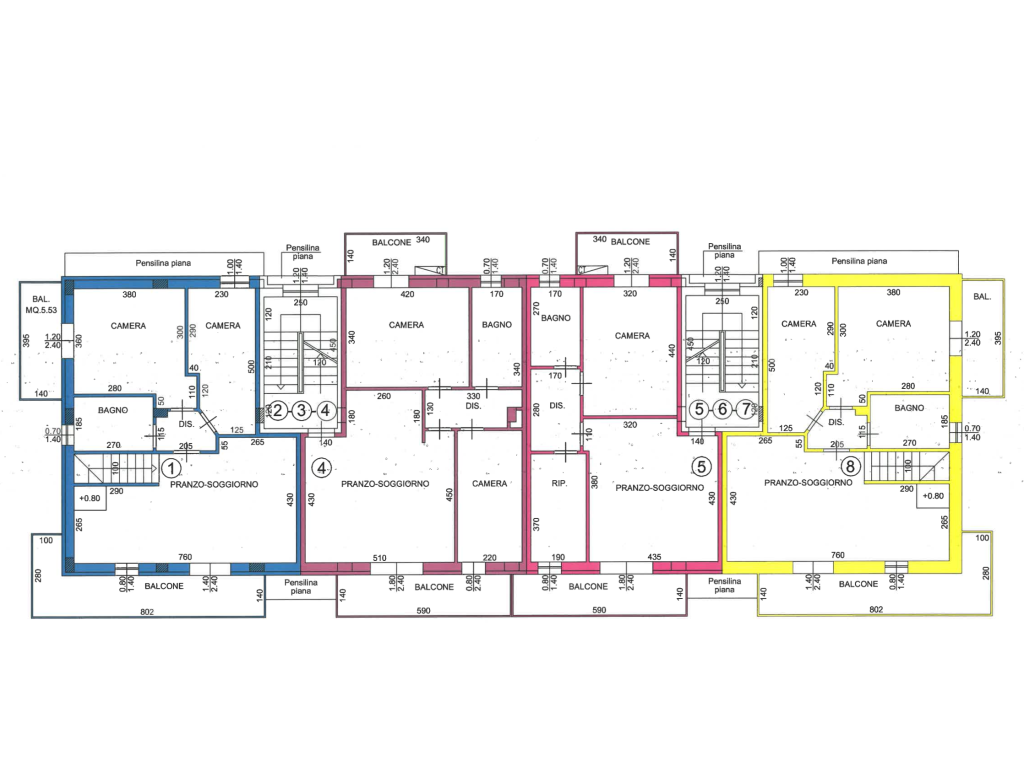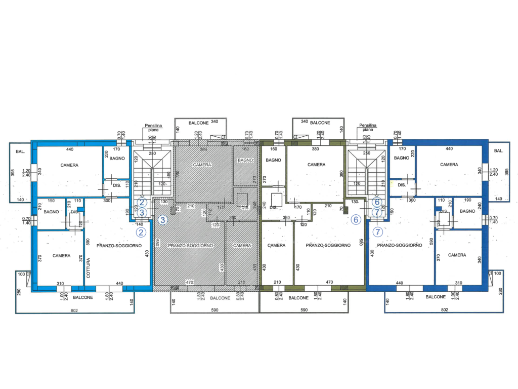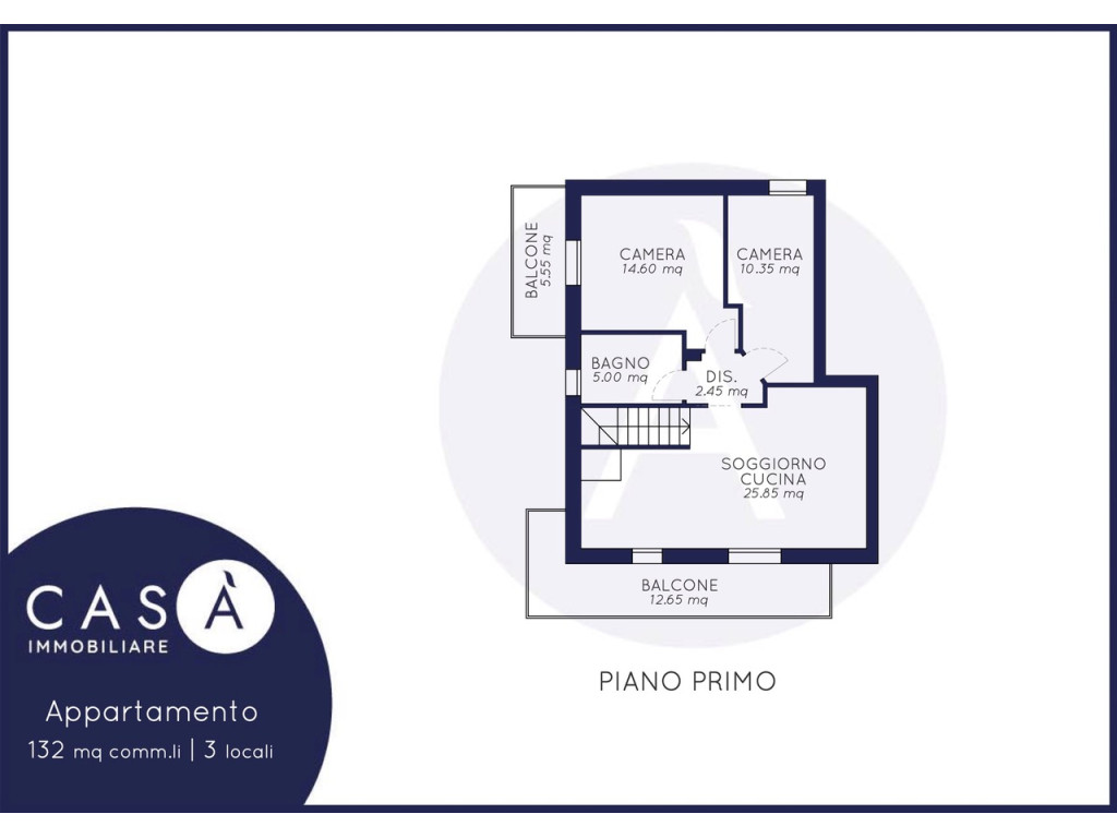Piano Primo: Soggiorno cucina open space - 2 Camere da letto - Bagno - 2 Balconi