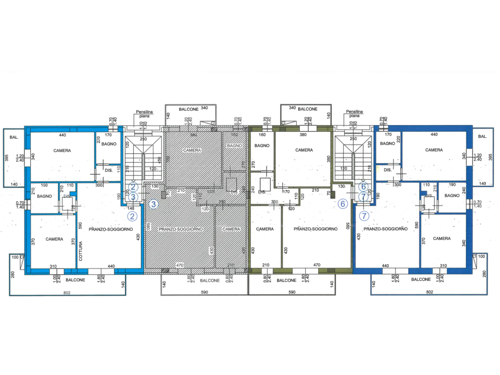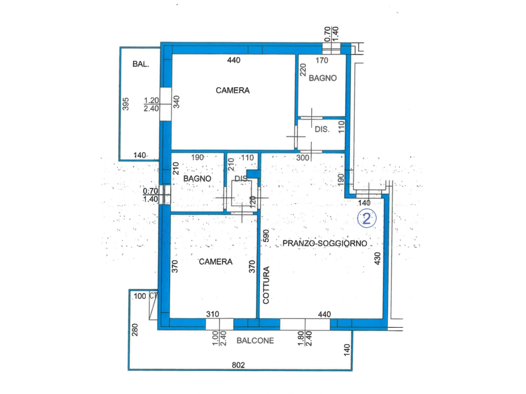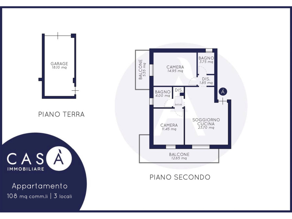 Piano Secondo: Soggiorno cucina open space - 2 Camere da letto - 2 Bagni - 2 Balconi