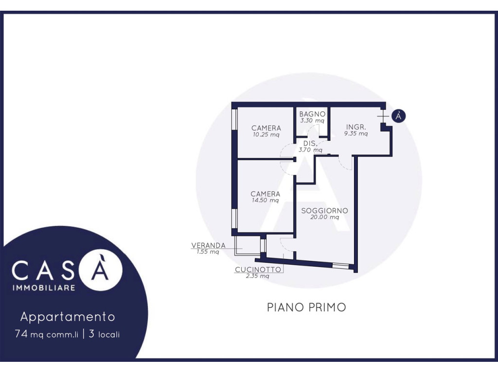 Piano primo: Soggiorno - Cucinotto - Camera da letto matrimoniale - Camera da letto singola - Bagno - Balcone