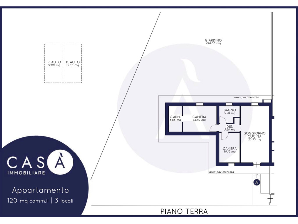 Soggiorno cucina open space - Disimpegno - Camera da letto matrimoniale - Cabina armadio - Camera da letto singola - Bagno - Giardino privato