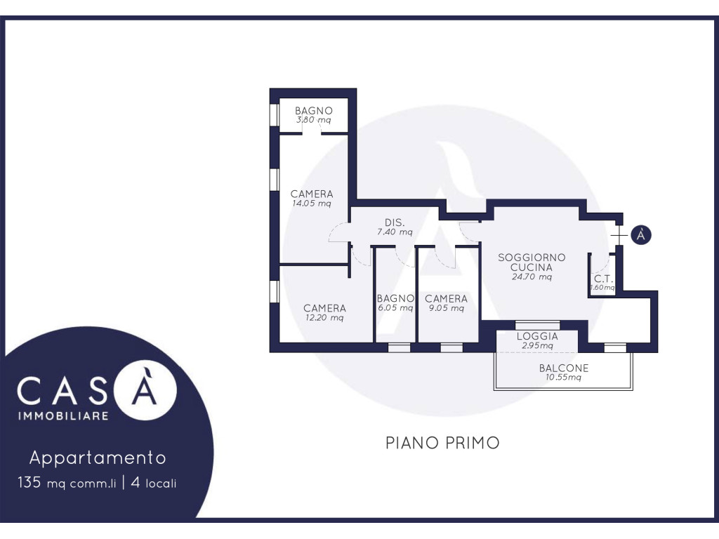 Piano Primo: Soggiorno cucina open space - Camera da letto matrimoniale - Camera da letto doppia - Camera da letto singola - 2 Bagni - Loggia - Balcone