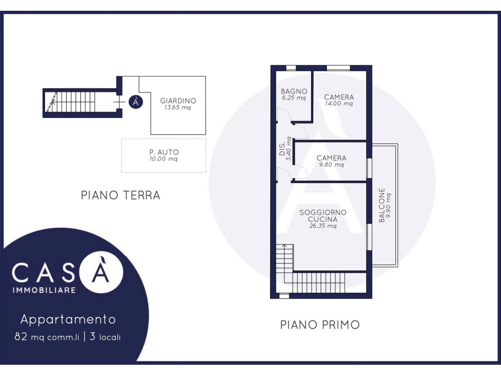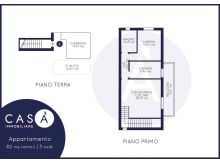 Piano primo: Soggiorno cucina open space - Camera da letto matrimoniale - Camera da letto singola - Bagno - Corte esclusiva - Balcone