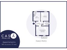 Piano primo: Ingresso - Soggiorno Cucina open space - Camera da letto matrimoniale - Studio - Bagno - Balcone