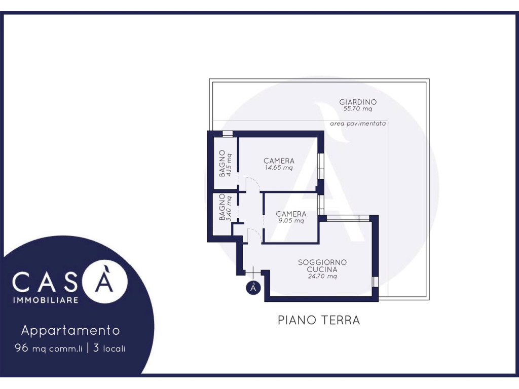 L'appartamento è caratterizzato da un design moderno, con dettagli e finiture di pregio e dispone di un giardino di 86 mq.