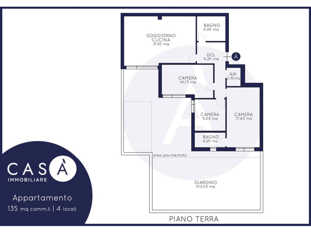 E' caratterizzato da un design moderno, con dettagli e finiture di pregio e dispone di un giardino privato di 105 mq.