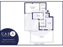 Piano terra: Soggiorno cucina open space - Disimpegno - Ripostiglio - 2 Camere da letto matrimoniali - Camera da letto singola - 2 Bagni - Giardino
