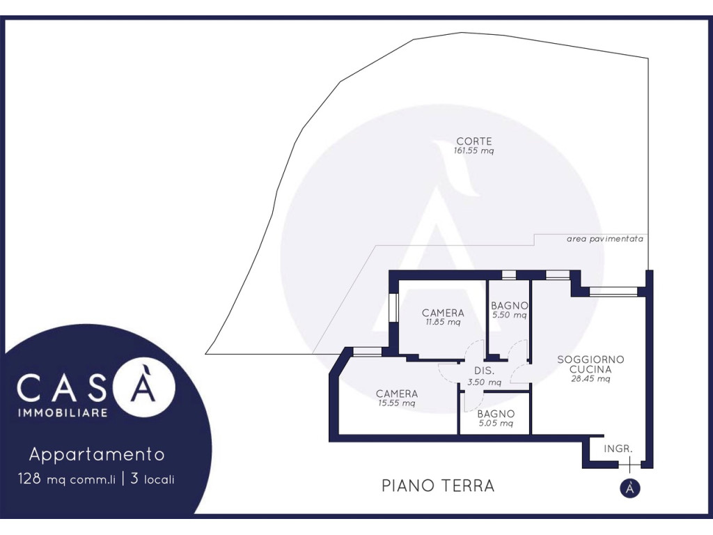 Dispone di ingresso indipendente, ampia corte privata e accesso diretto al garage.