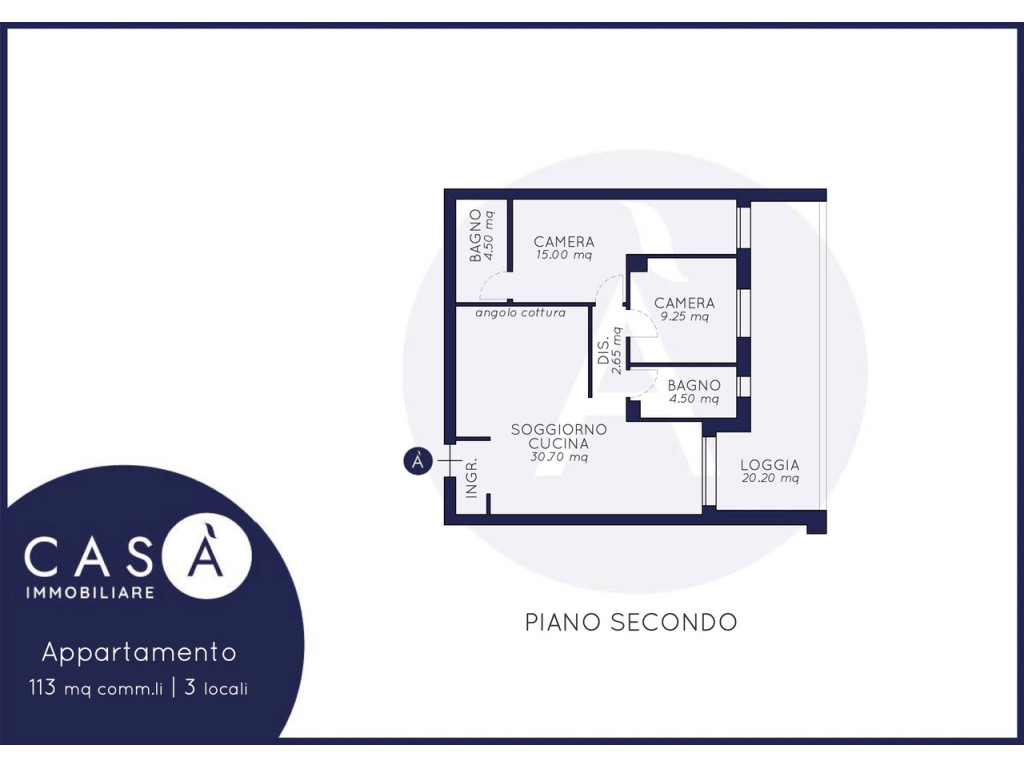 Piano Secondo: Soggiorno cucina open space - 2 Camere da Letto - 2 Bagni - Loggia - Balcone