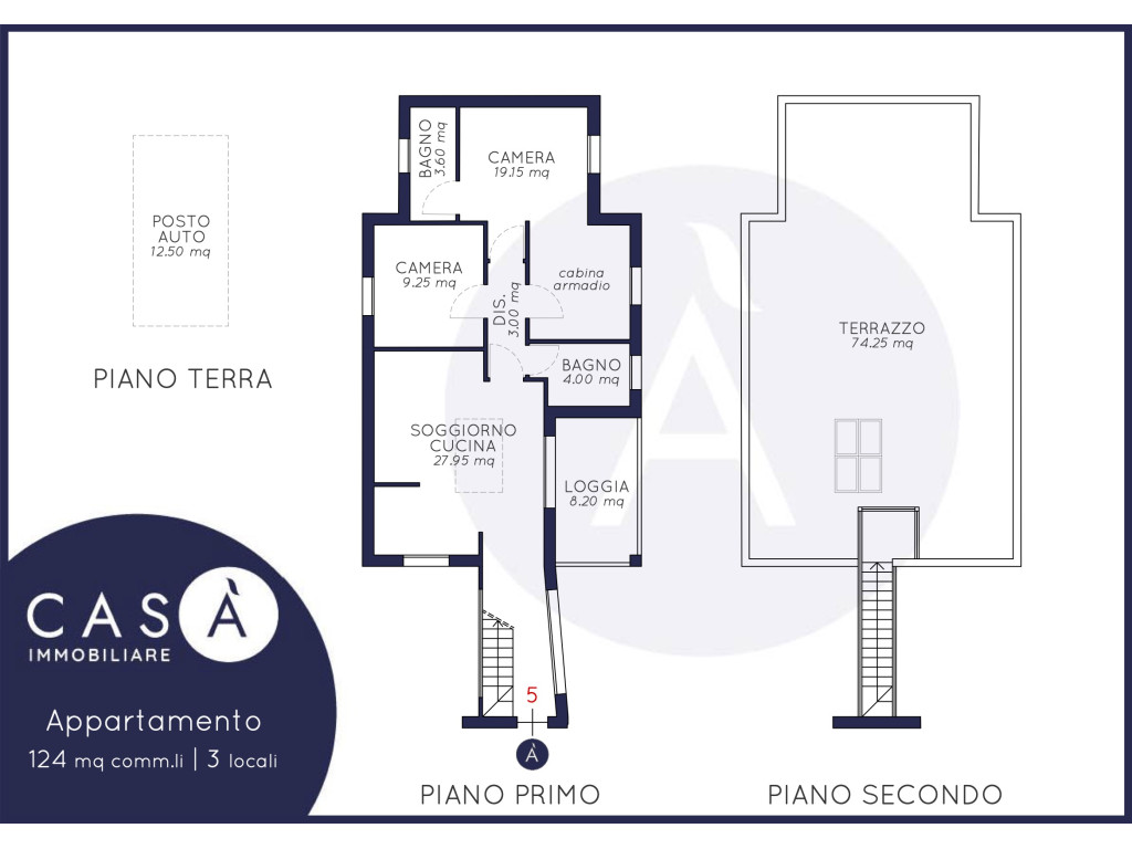 Piano Primo: Soggiorno cucina open space - Camera da letto matrimoniale - Cabina Armadio - Camera da letto singola - 2 Bagni - Loggia - Balcone