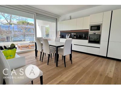 Soluzione caratterizzata da ampie vetrate, che riempiono gli spazi di luce naturale, e da finiture di pregio che donano un’eleganza moderna e ricercata.