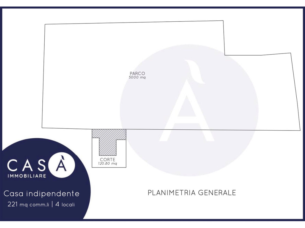 L'abitazione si completa con un parco privato e recintato di circa 5000 mq con accesso indipendente.