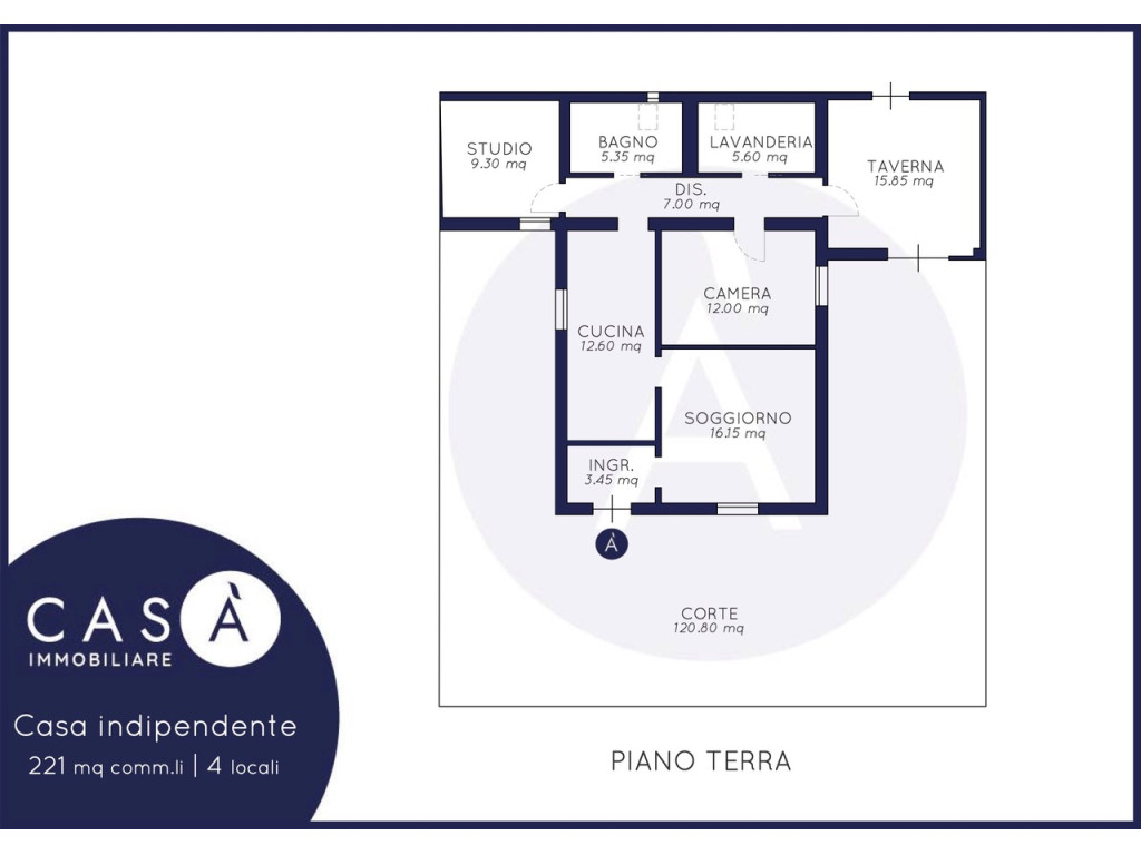 Piano Terra: Ingresso - Soggiorno - Cucina - Bagno - Lavanderia - Camera da letto matrimoniale - Studio - Taverna - Corte - Parco