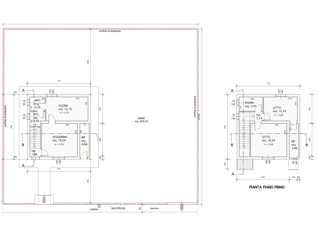 Piano Primo: Camera da letto matrimoniale - Camera da letto doppia - Bagno - Ripostiglio