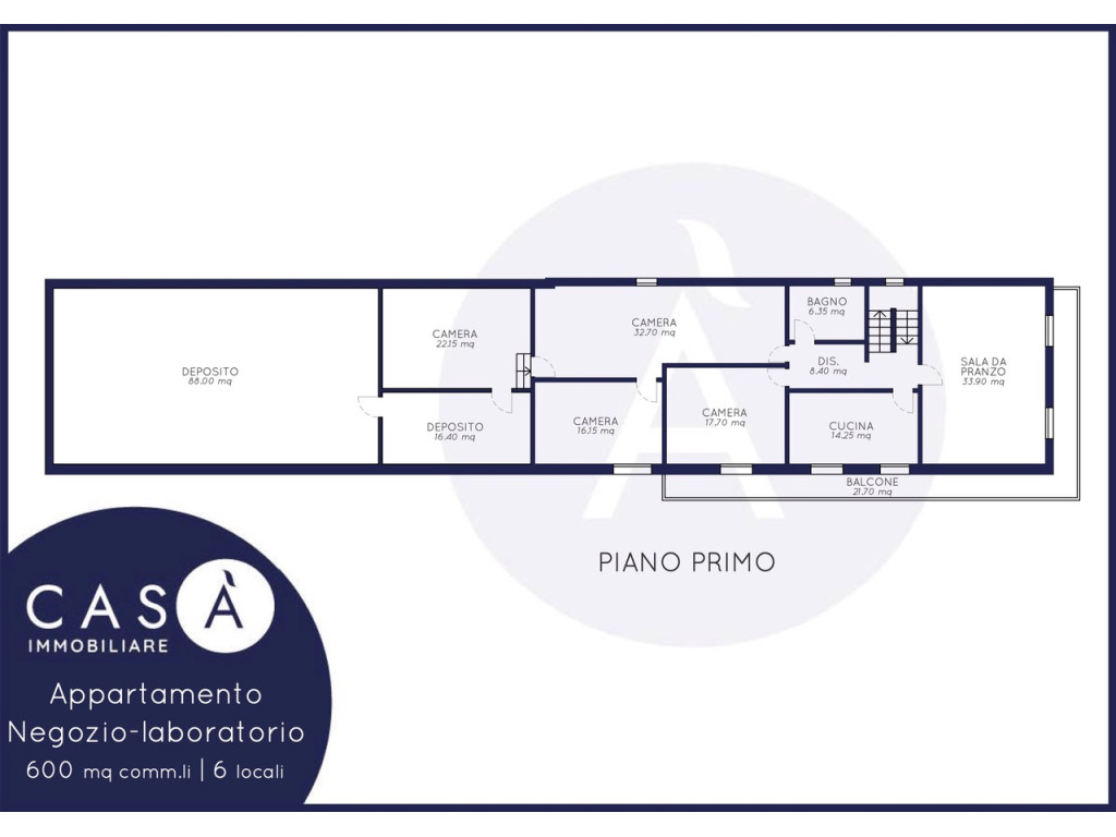 Al piano primo si sviluppa l’appartamento, caratterizzato da ampi spazi abitativi che lo rendono facilmente personalizzabile in base alle proprie esigenze.