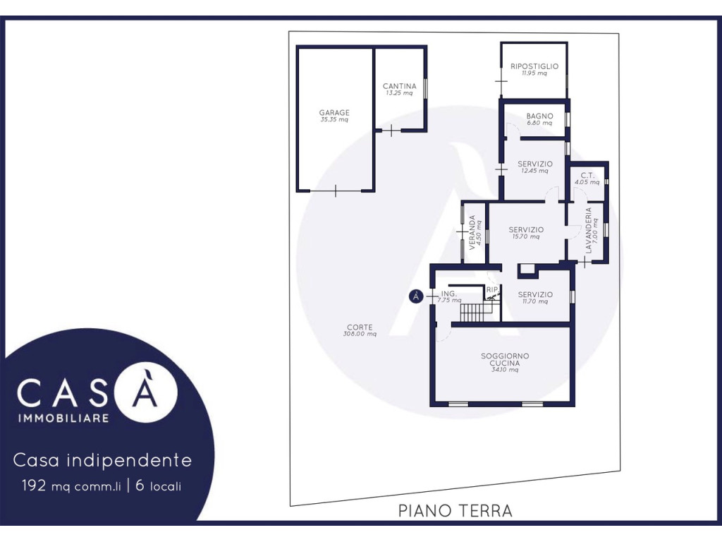 Piano Terra: Ingresso - Soggiorno e Cucina open space - Bagno - Bagno - Lavanderia - Veranda - Corte - 2 Servizi