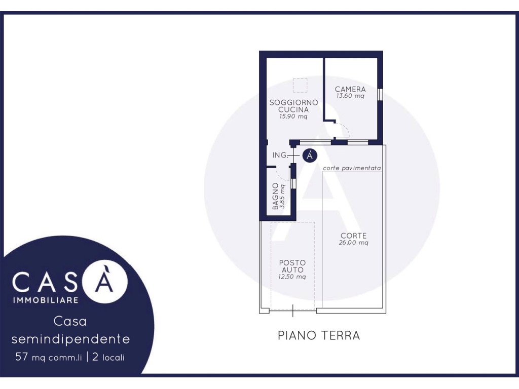 Immobile su unico livello con giardino privato, portico, un ripostiglio e possibilità di parcheggio nella corte privata.