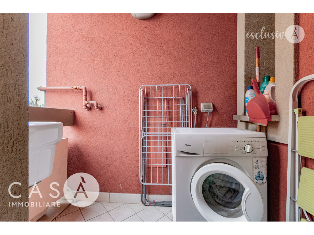 L'appartamento dispone di una loggia con lavanderia e un posto auto di proprietà al piano terra.