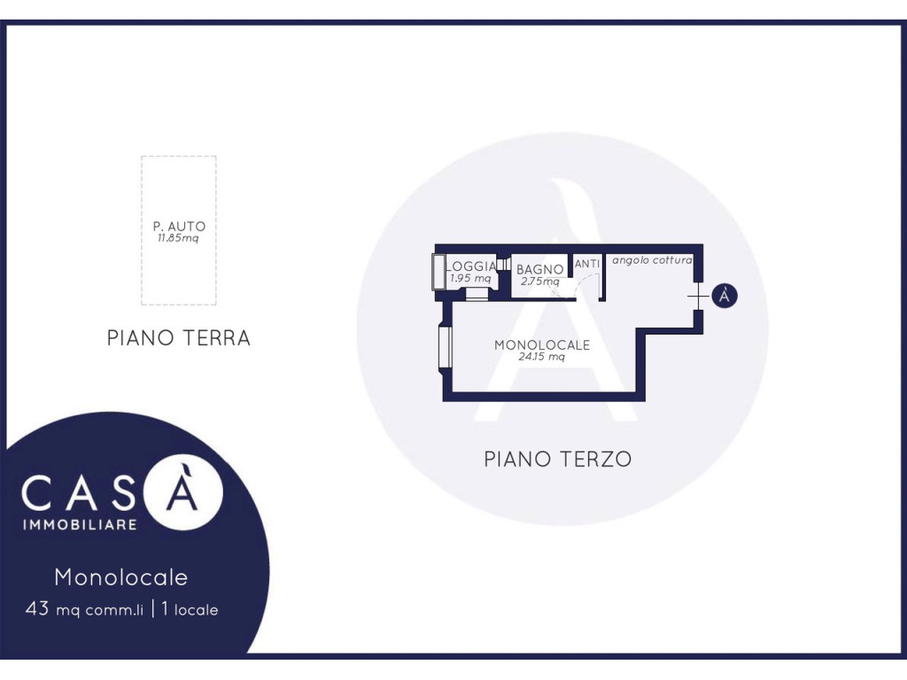 Monolocale | 43 Mq comm.li